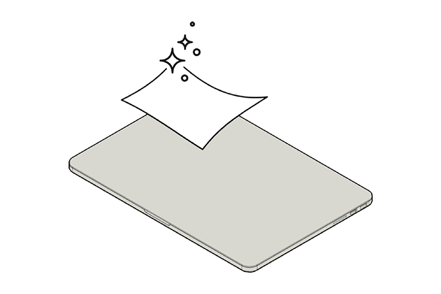 Clean laptop surface with included alcohol pad.
